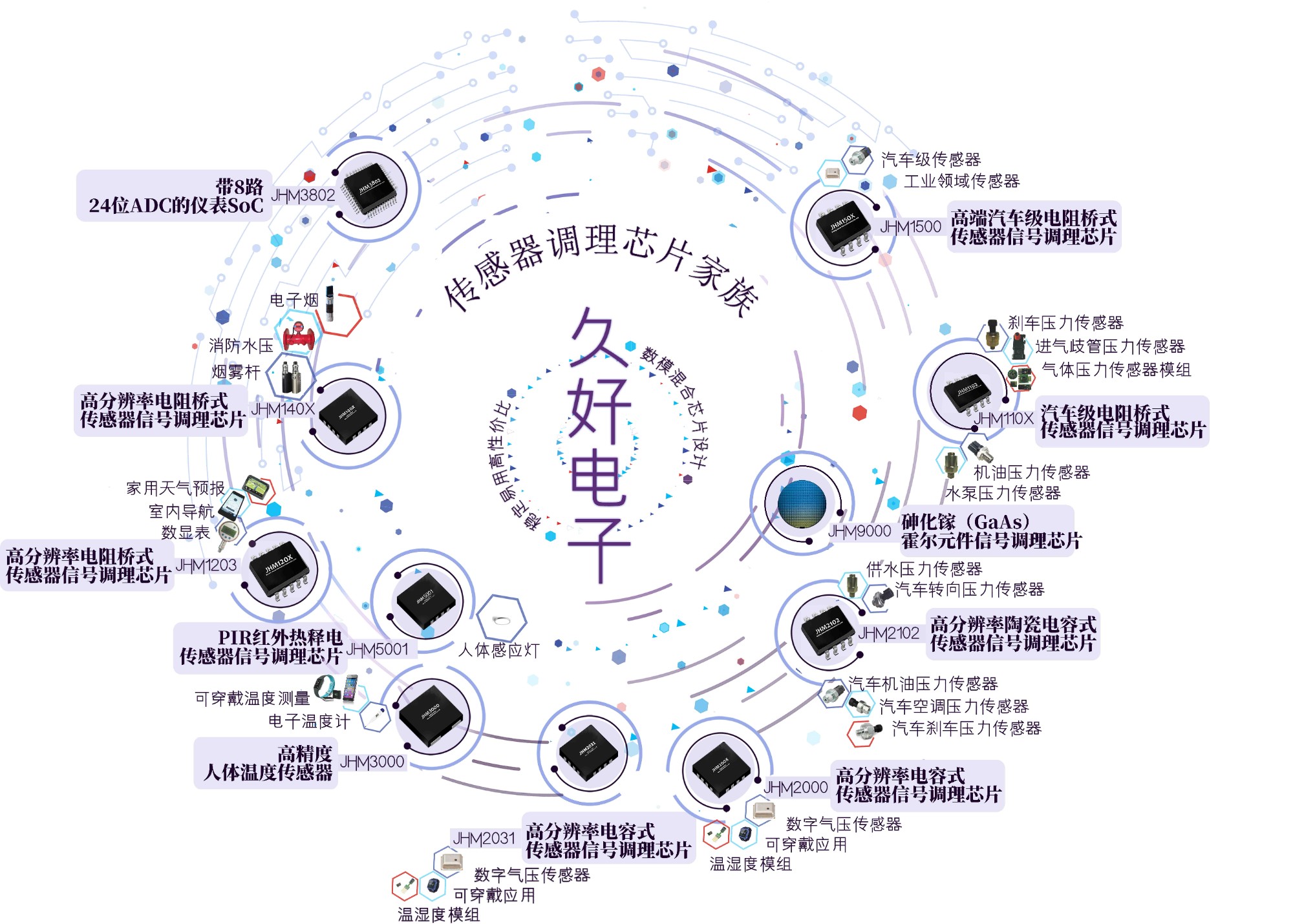 北京久好電子科技有限公司創立于2014年,核心創業團隊為一批清華集成電路校友。公司專注于數模混合SoC芯片的設計開發,已量產的傳感器信號調理芯片系列已經廣泛應用于壓力、溫濕度、紅外熱釋電(PIR)、溫度和電流等傳感器領域,尤其是在車用壓力傳感器領域取得卓越成果。公司在超低功耗數模混合集成電路設計、低功耗SoC系統設計、大批量量產系統與信號調理芯片的應用軟件開發等領域積累了豐富的經驗,能快速地為合作伙伴提供具有世界競爭力的芯片技術及完整解決方案。